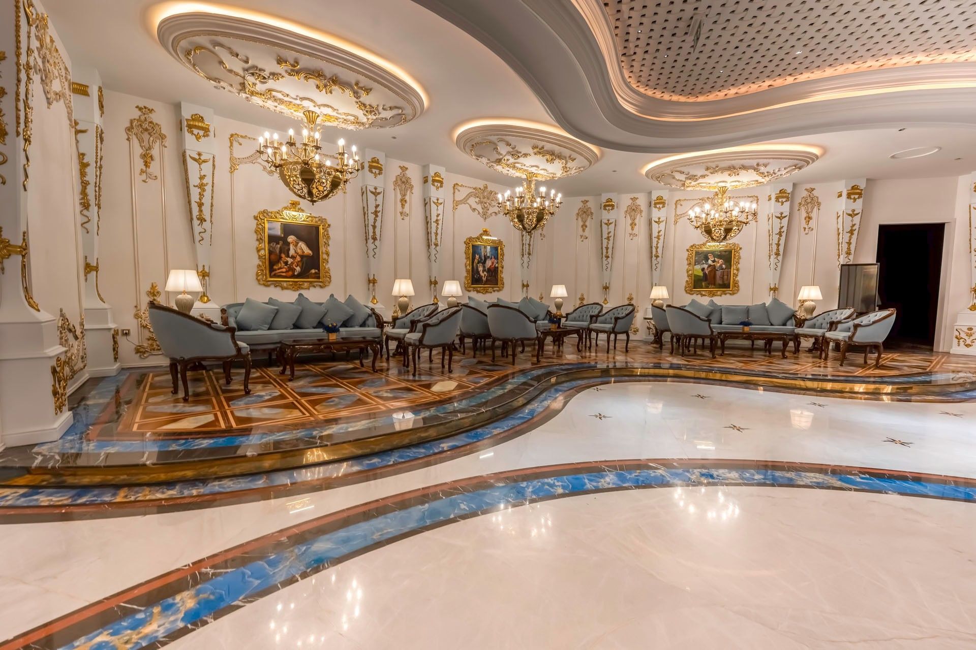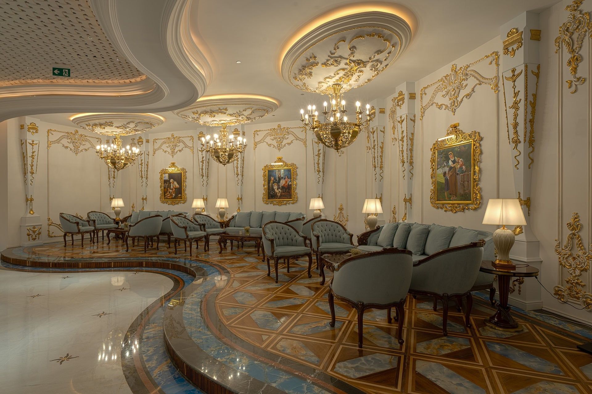 The hotel features eight sophisticated halls and a private event meeting room, ideal for weddings, conferences, and corporate gatherings.