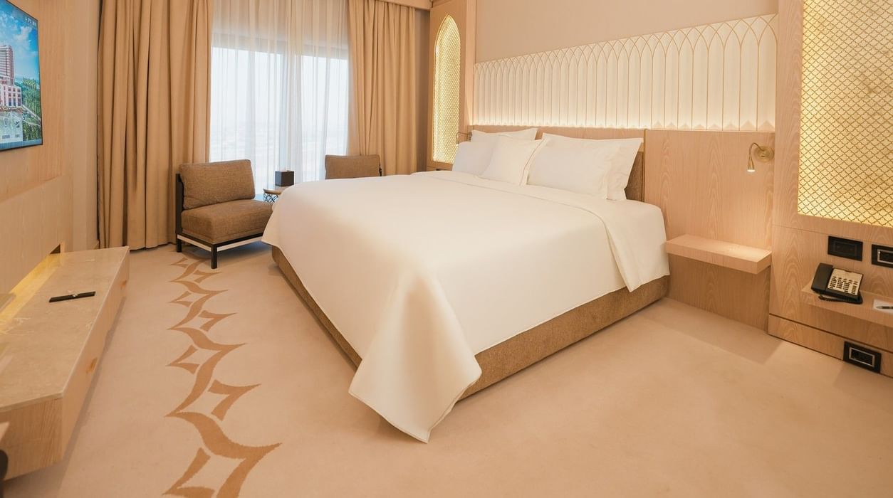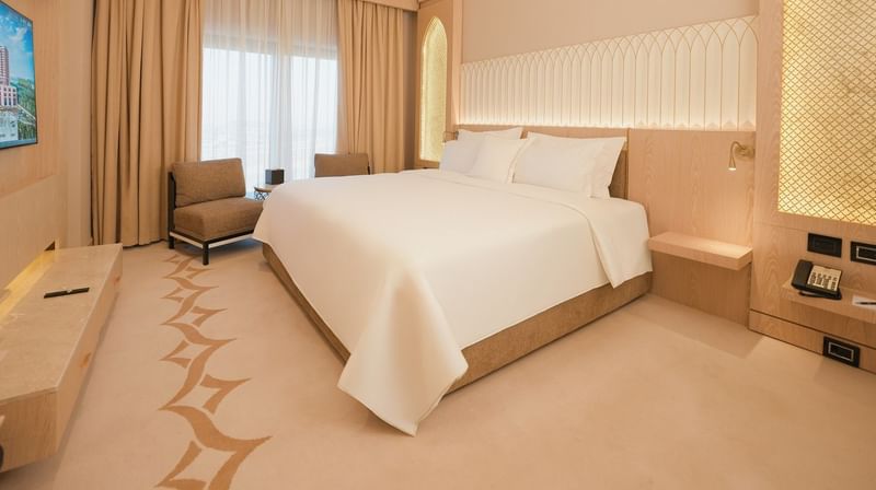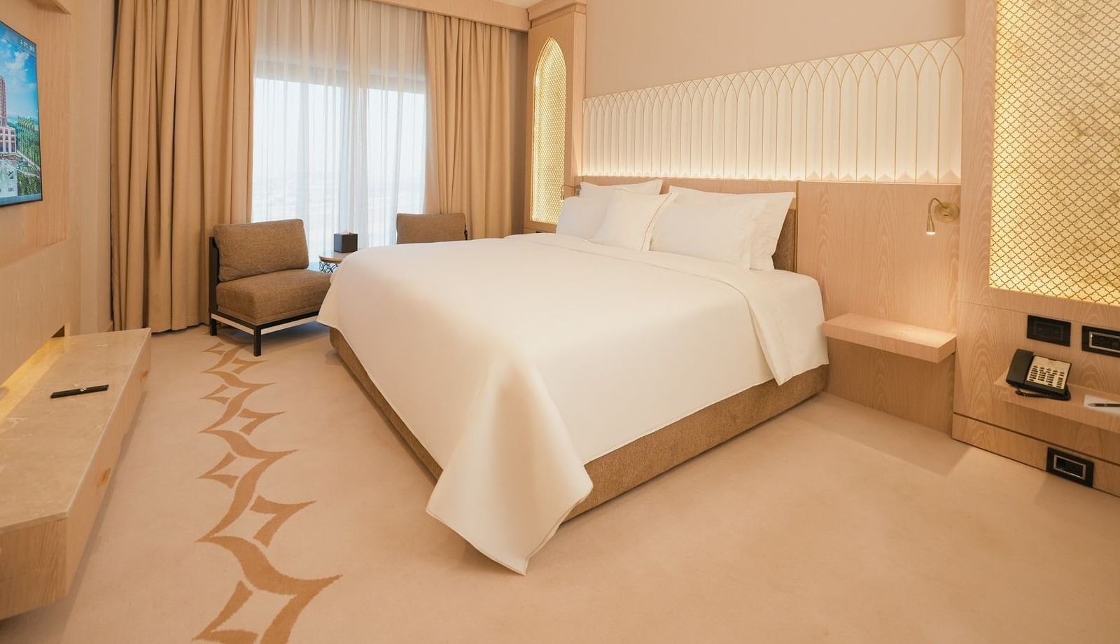 Spacious Room with City and Tigris View. More than just space—this room opens to a view where the flowing water of the Tigris meet the architectural brilliance of Zaha Hadid. It’s not simply a stay; it’s a journey through the rich layers of Baghdad’s history, experienced in a setting that blends elegance, comfort, and cultural depth.